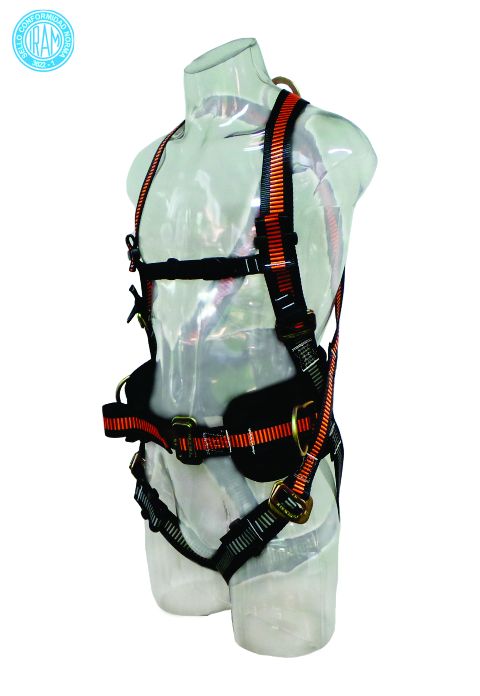 3 Puntos de anclaje: 2 Argollas D Laterales, 1 Anilla forjada en cruce posterior.