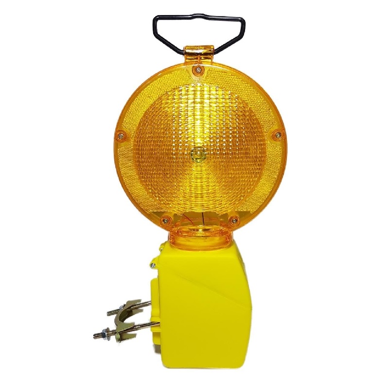 Baliza intermitente a led, doble faz con sensor solar, para señalizar en obras nocturnas.