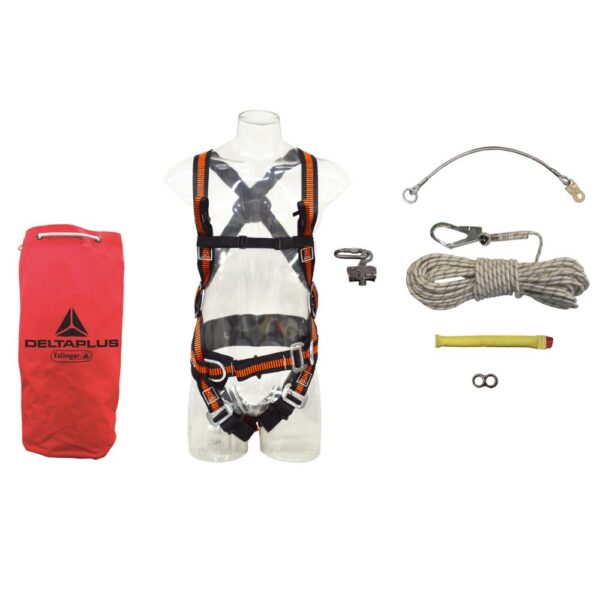 Linea de Vida Horizontal Temporal (10 o 20 metros) es un elemento de protección en alturas facil de manipular y ligera con contenedor de transporte. Se instala rapidamente, basta con colocar los anclajes y tenzar la Linea de Vida con el crique. Presenta un amortiguador Absorx incluido que reduce las cargas finales para proteger al usuario.